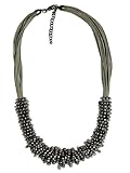 - Absolutely captivating is this gathering of silver-gray seed bead rings falling from a multi-strand cotton necklace.